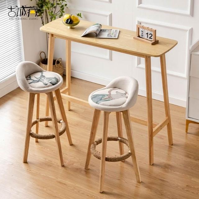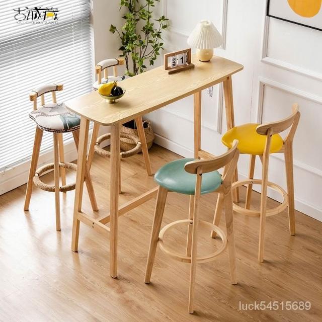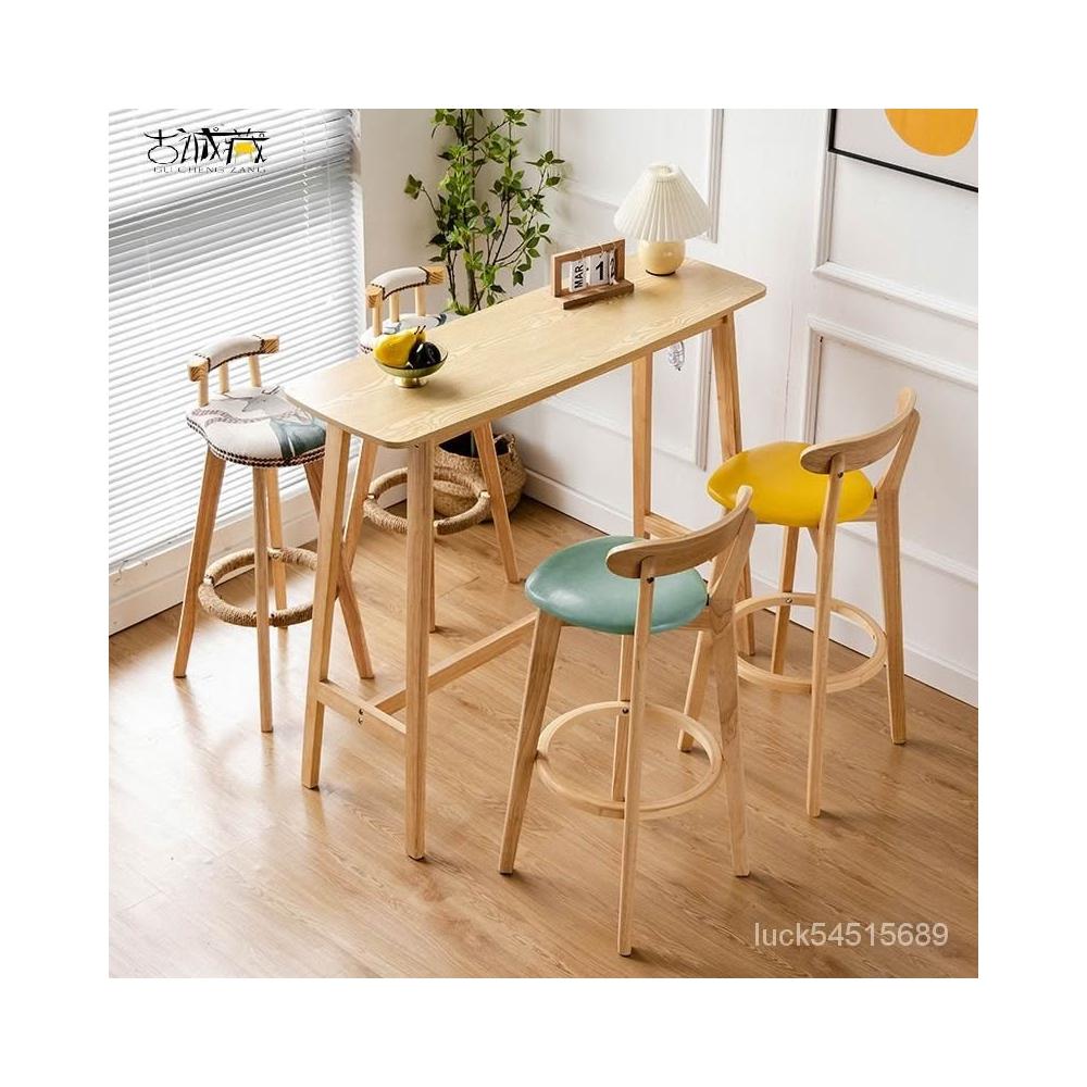 高腳桌 高腳椅 吧檯桌 吧檯椅 吧台桌椅 餐桌 餐椅 吧檯椅北歐實木小吧臺桌椅組閤傢用簡約高腳長條桌靠墻酒吧桌