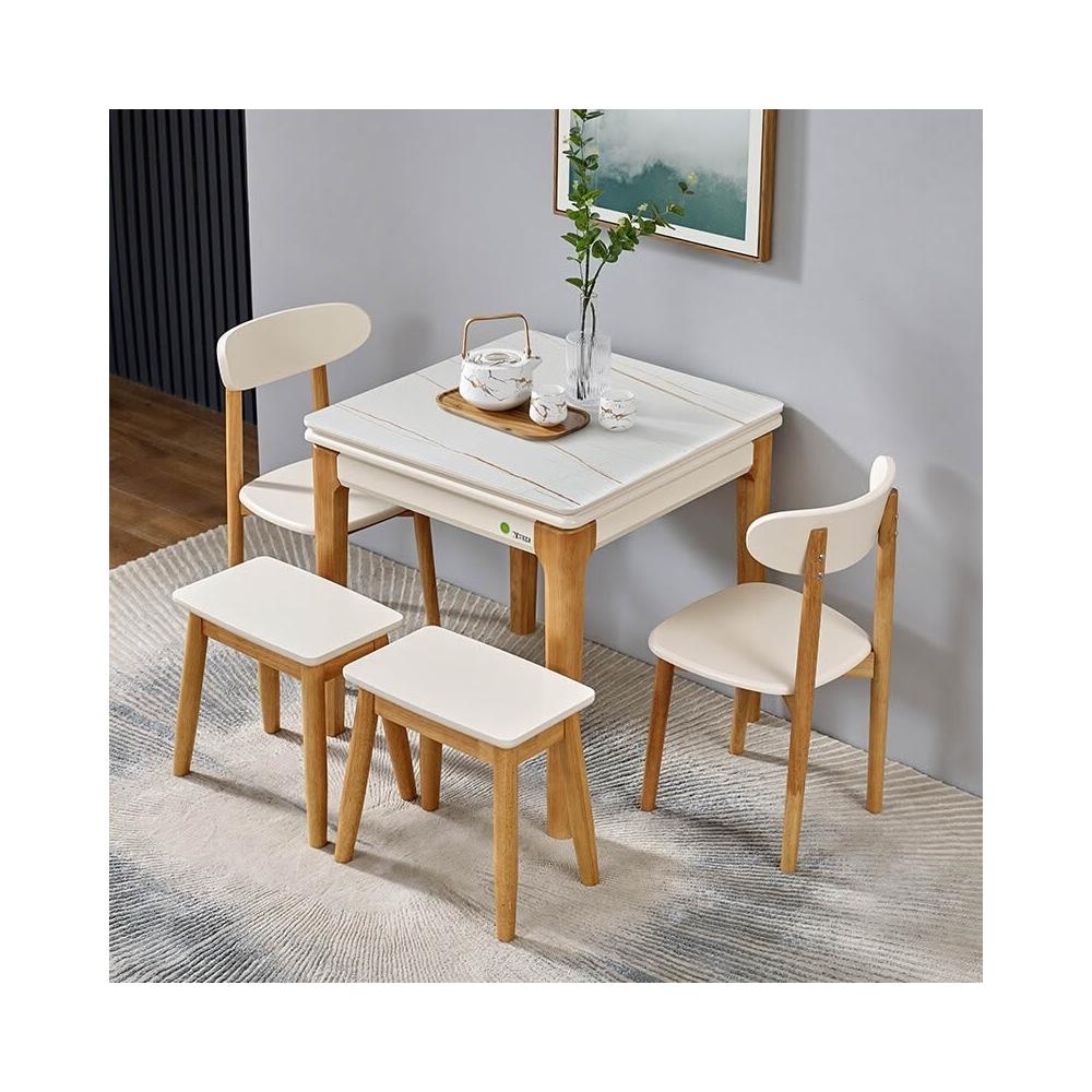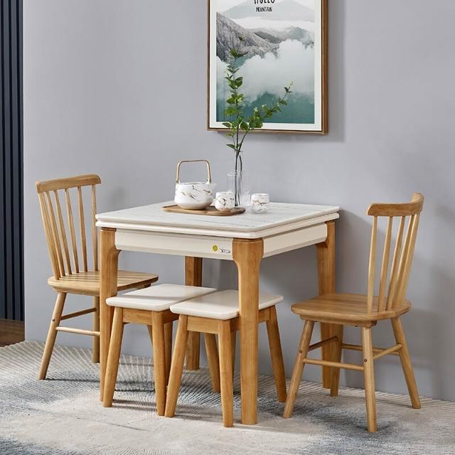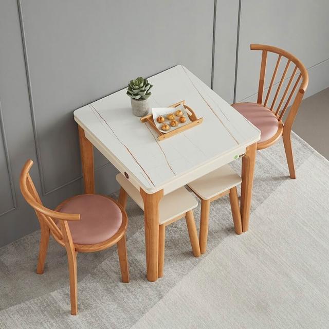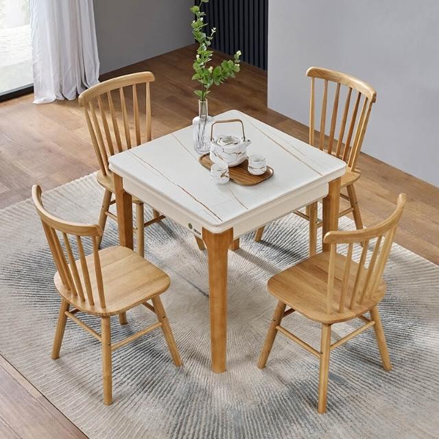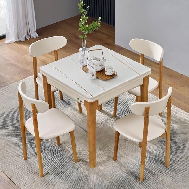 折疊餐桌 北歐岩板正方形折疊餐桌現代簡約小戶型實木家用可伸縮餐桌椅組合多功能鋼化玻璃吃飯桌子