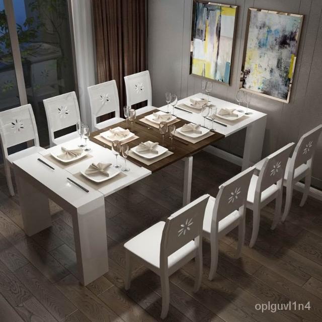 限時優惠 簡約伸縮桌子 可折疊餐桌 傢用10人8人多功能省空間 小戶型拉伸餐桌 RIKM