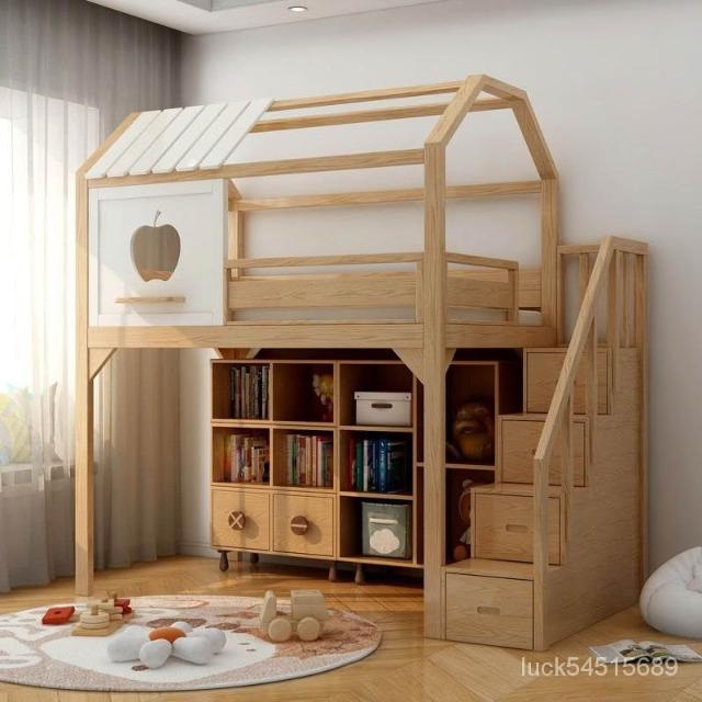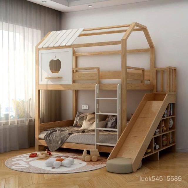 到府安裝 可支持貨到付款#全實木兒童上下床 雙層床 滑梯蘋果樹屋床 城堡男女孩公主 高低子母床 OJUE
