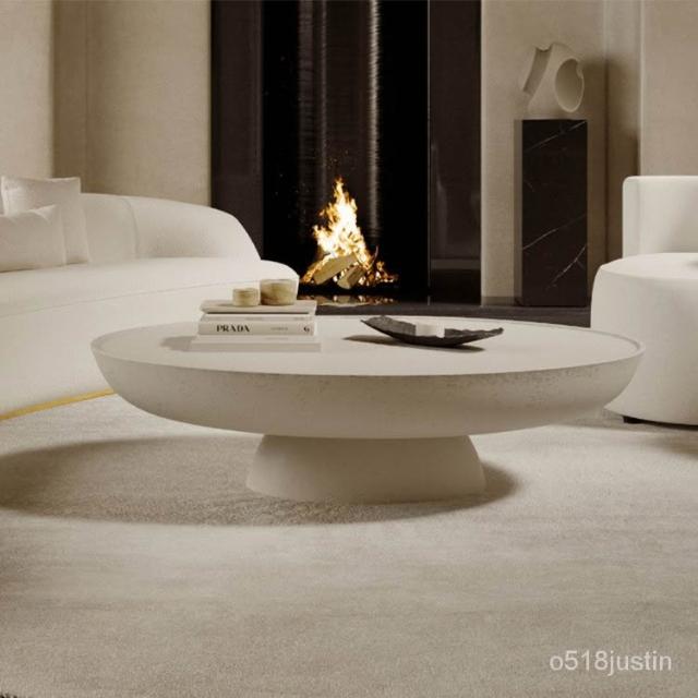 {格林家具城}現代簡約侘寂風茶几橢圓形輕奢北歐大小組合咖啡桌家用小戶型茶台