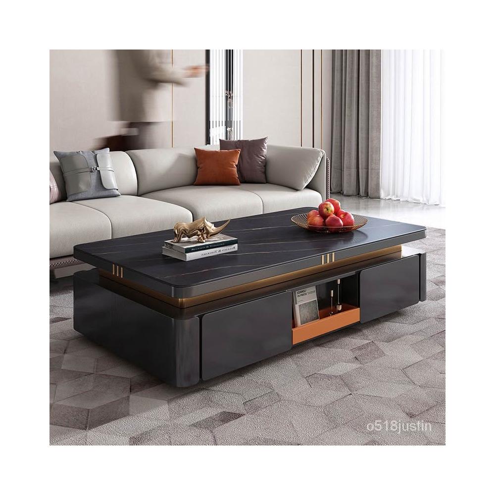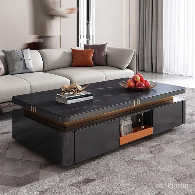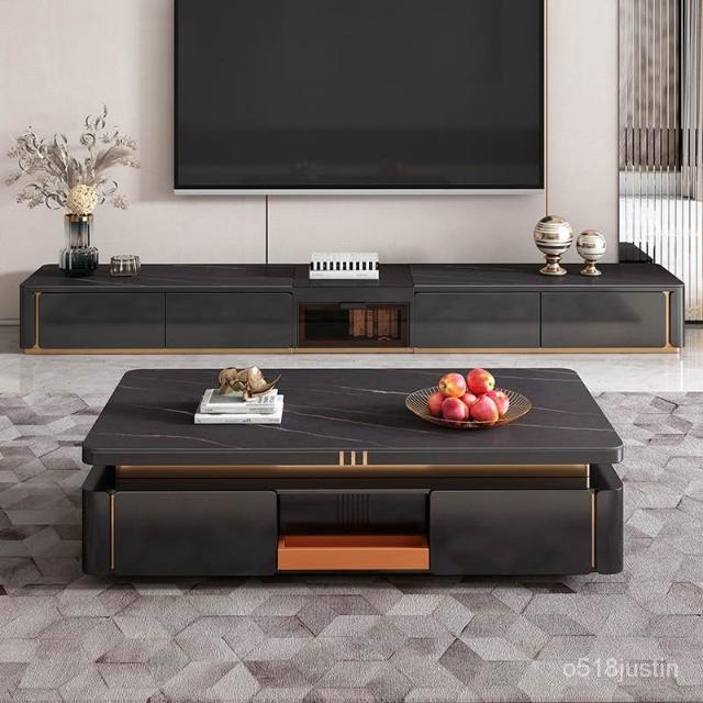 {格林家具城}全慕意式客廳岩板茶几電視櫃組合現代帶儲物收納輕奢長方形茶幾桌