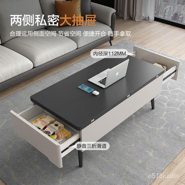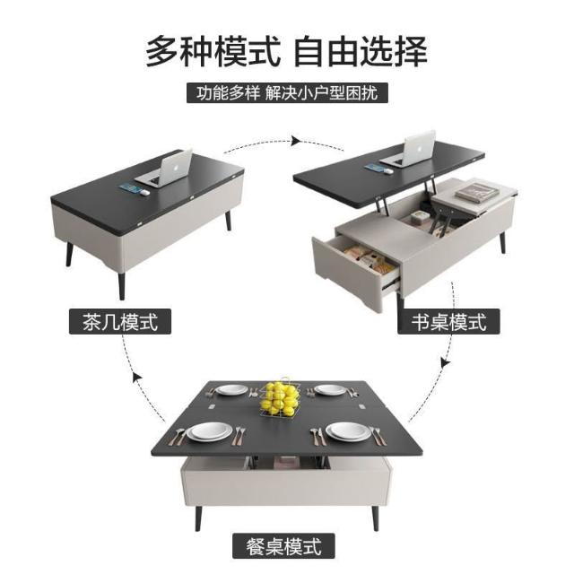 {格林家具城}古宜升降茶几餐桌兩用多功能飯桌簡約小戶型家用創意可伸縮折00