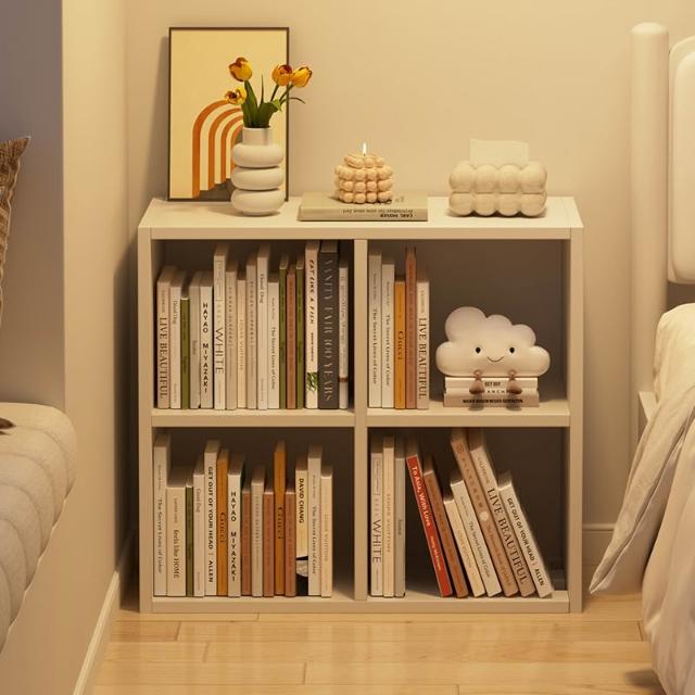 床頭書櫃書架落地置物架靠牆小戶型收納櫃家用多層床邊格子櫃