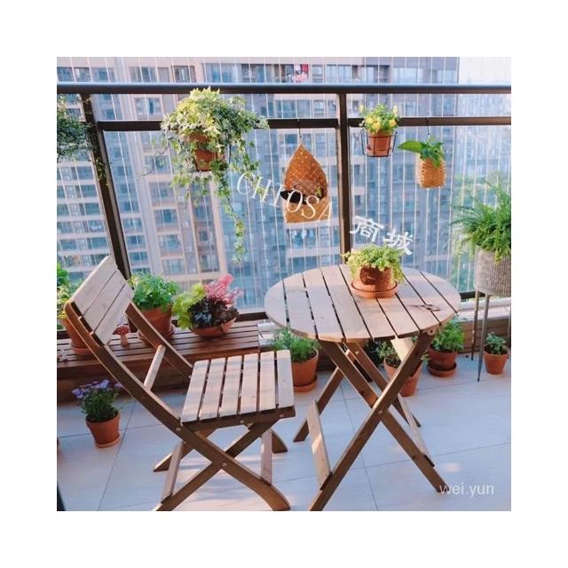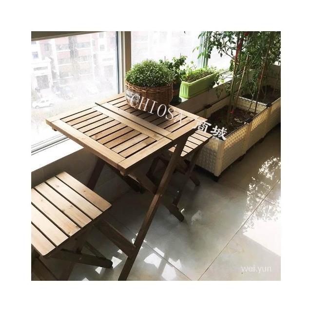 陽臺木桌小桌椅折疊桌戶外桌子便攜式庭院靠墻小型餐桌實木簡易