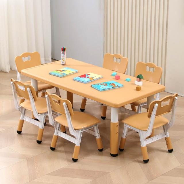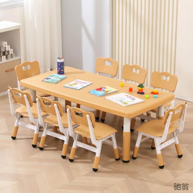 原木色兒童桌椅套裝幼稚園學習桌子塑膠長方形家用寶寶早教可升降
