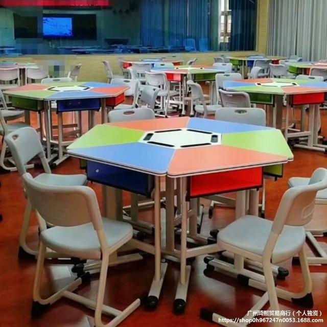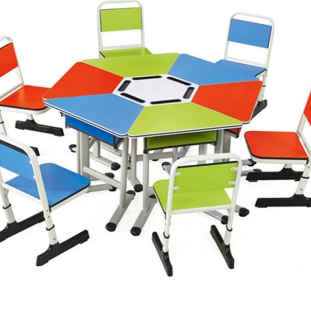 拼接課桌椅學校六角桌六邊形桌培訓機構輔導組合團體託管班小學生
