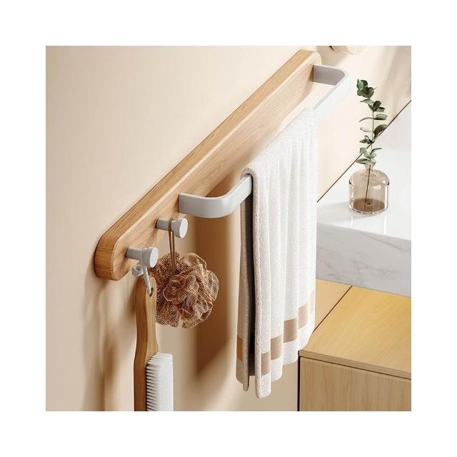 創意實木毛巾架免打孔洗漱臺擦手巾架浴室廁所浴巾掛鉤櫸木毛巾杆