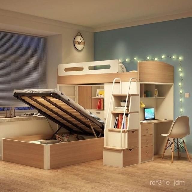 高低床帶書桌雙層床錯位型上下鋪交錯式上下床小戶型兒童房 上床下空樹屋床 高低床實木二層床家用雙人床 多功能組閤上床下桌