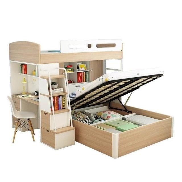 高低床帶書桌雙層床錯位型上下鋪交錯式上下床小戶型兒童房 上床下空樹屋床 高低床實木二層床家用雙人床 多功能組閤上床下桌