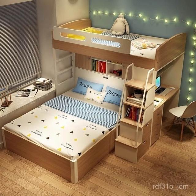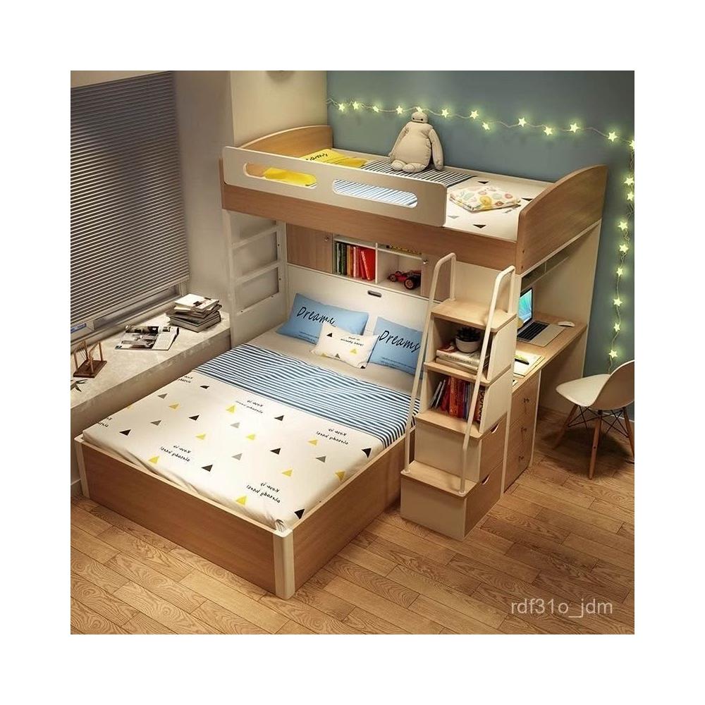 高低床帶書桌雙層床錯位型上下鋪交錯式上下床小戶型兒童房 上床下空樹屋床 高低床實木二層床家用雙人床 多功能組閤上床下桌