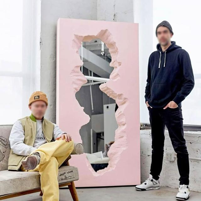 MDS北歐網紅聯名款 做舊破碎鏡子 玻璃鋼異形穿衣鏡 設計師不規則全身鏡