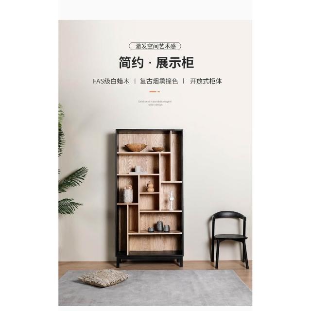 📜開立發票📜 日式侘寂風書櫃 極簡書櫃 展示櫃 客廳陳列櫃 靠牆置物櫃 落地裝飾櫃 多層書櫃 全實木書櫃