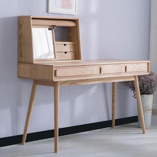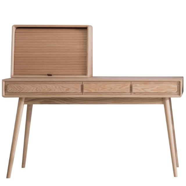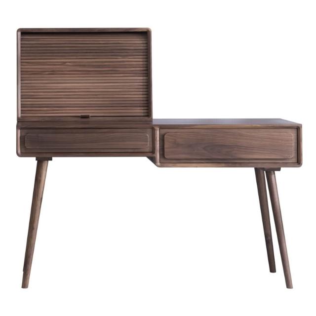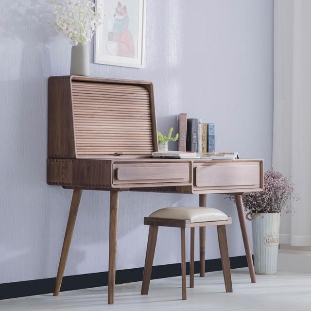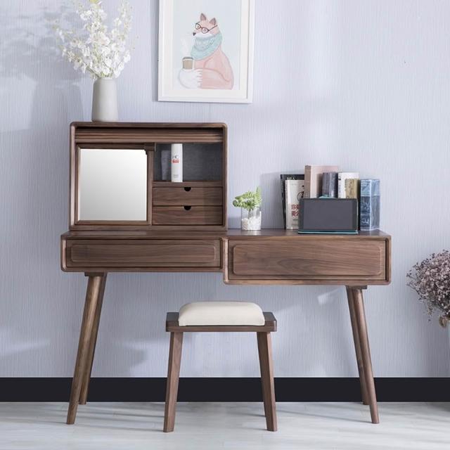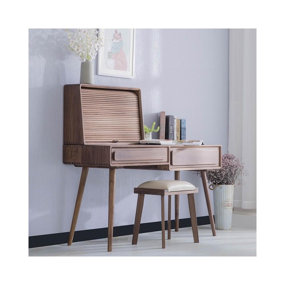 ⚡開立發票⚡ 日式侘寂風化妝桌 臥室捲簾梳妝臺 附鏡化妝桌 黑胡桃木書桌 梳妝台 家用電腦桌 化妝檯 實木化妝桌
