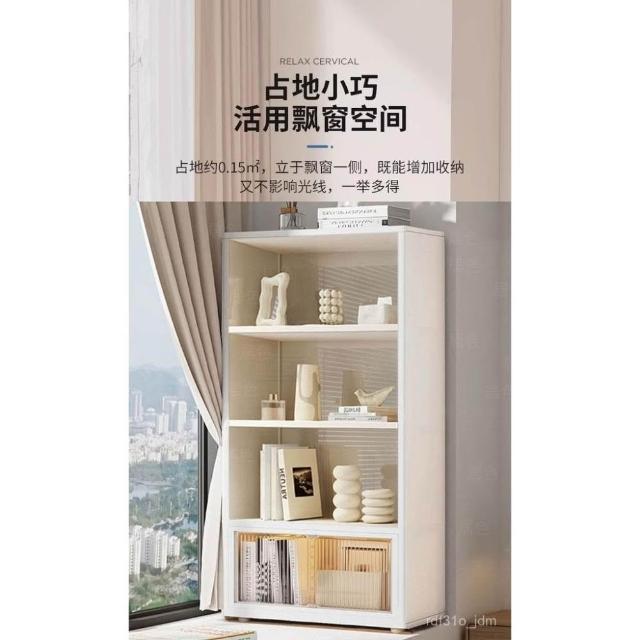 超薄書架落地書櫃小窄飄窗櫃置物架陽臺收納儲物櫃白色帶櫃門簡約現代可坐 家用置物櫃子大容量儲物櫃