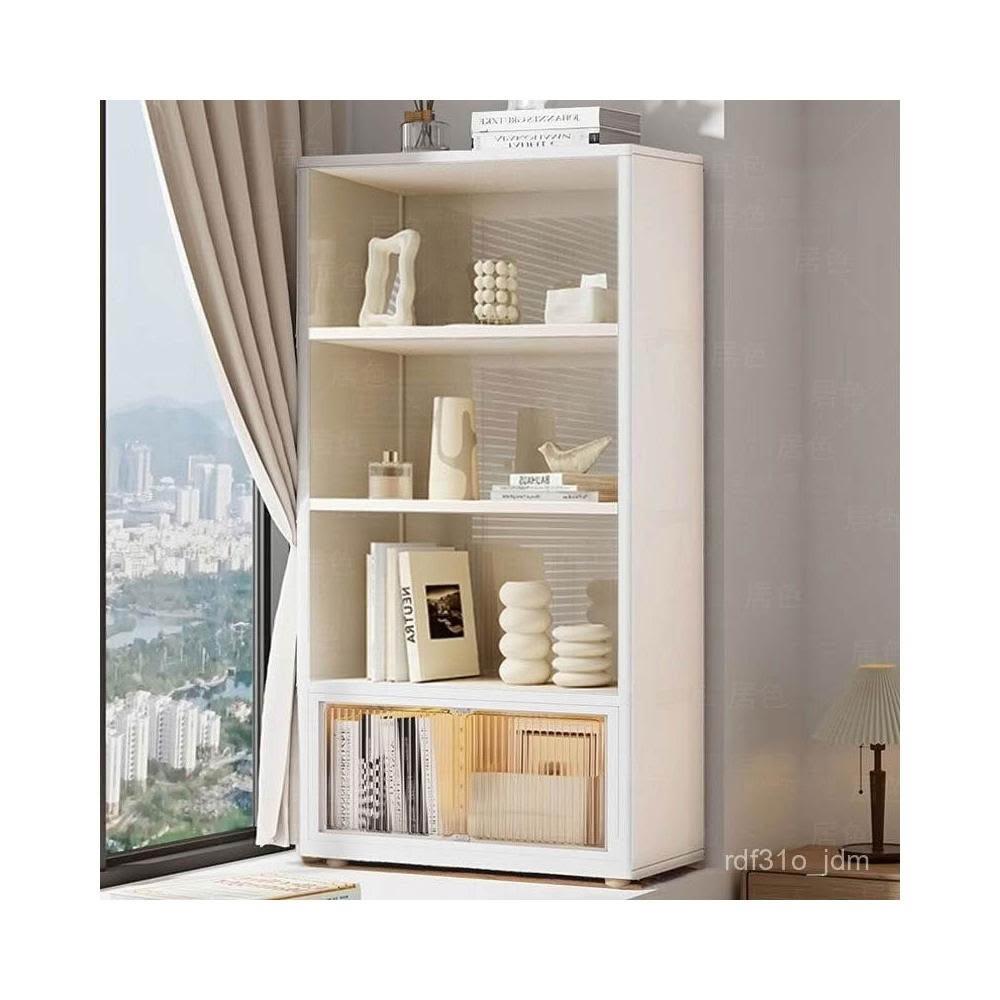 超薄書架落地書櫃小窄飄窗櫃置物架陽臺收納儲物櫃白色帶櫃門簡約現代可坐 家用置物櫃子大容量儲物櫃