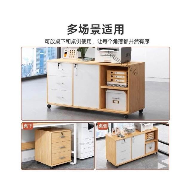 文件櫃辦公室木質帶鎖小柜子移動收納櫃抽屜櫃帶輪桌下儲物櫃矮櫃