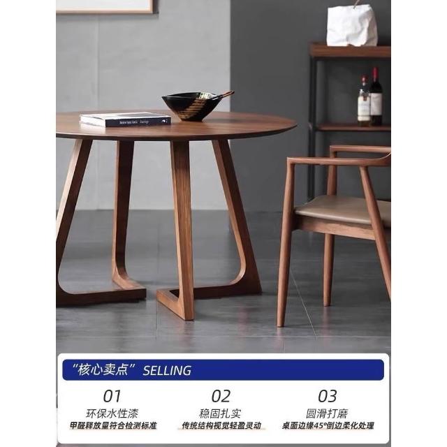 北歐 實木 圓餐桌 白蠟木 家用飯桌 法式圓餐桌 圓形原木 休閒洽談桌 大圓桌臺