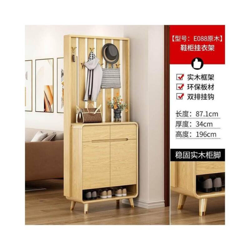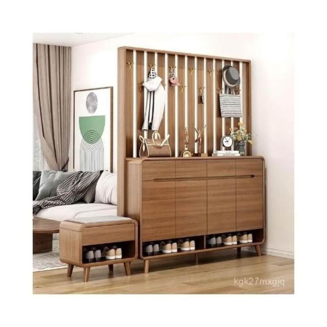 掛衣架鞋櫃組一體家用客廳玄關隔斷櫃實木色儲物櫃新款帶換鞋凳