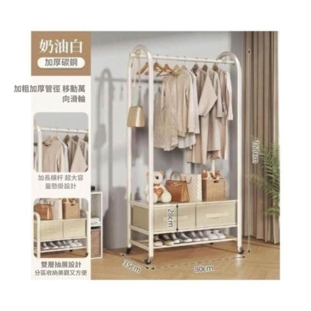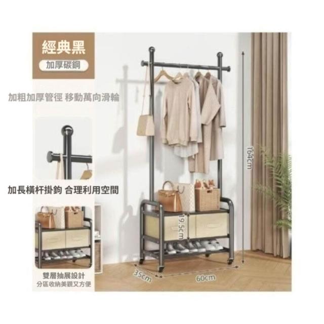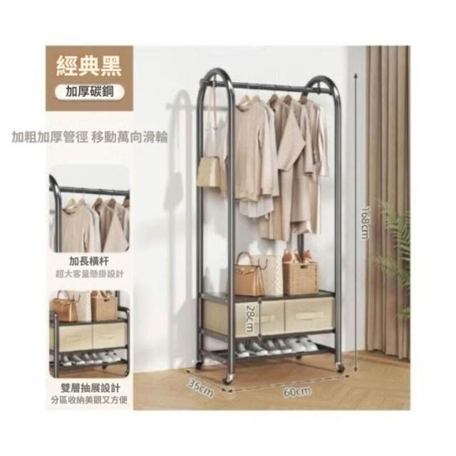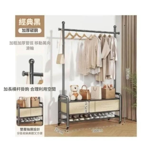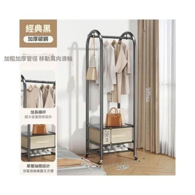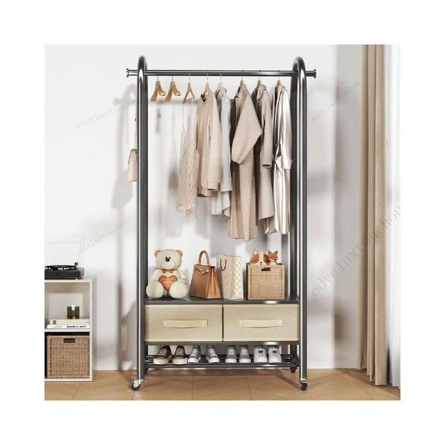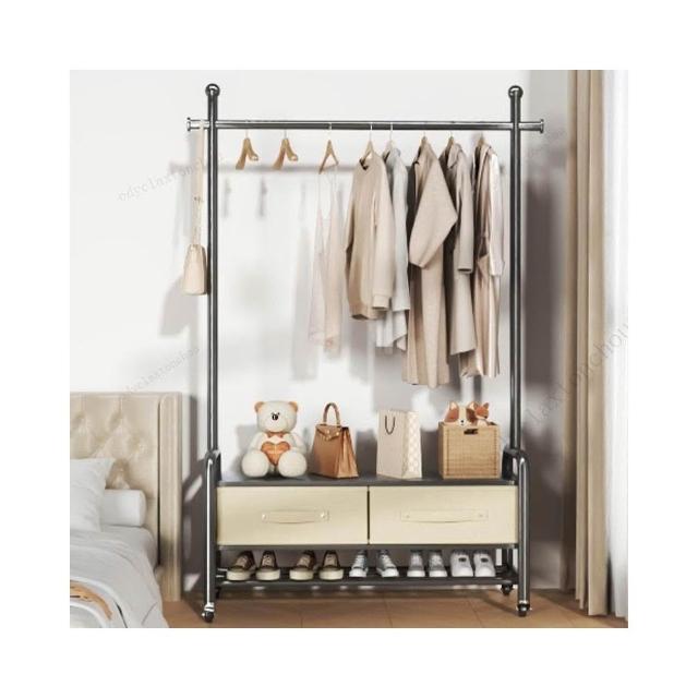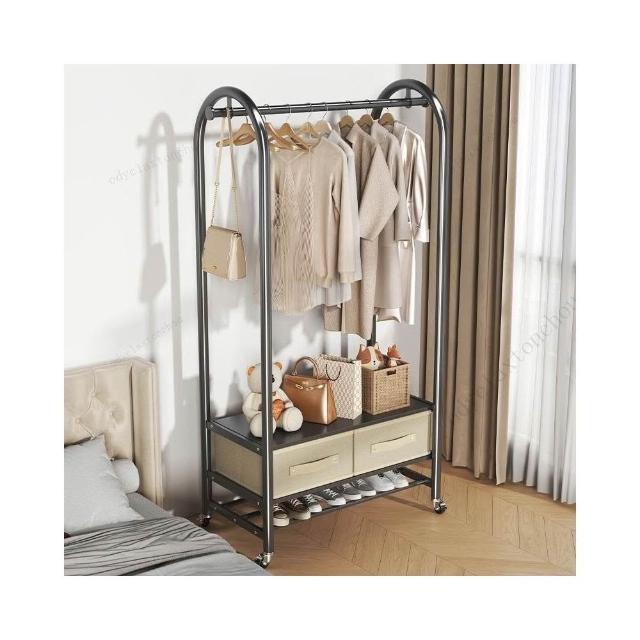 晾衣架落地家用衣帽架簡易掛衣架可移動小型帶抽屜收納床頭置物架