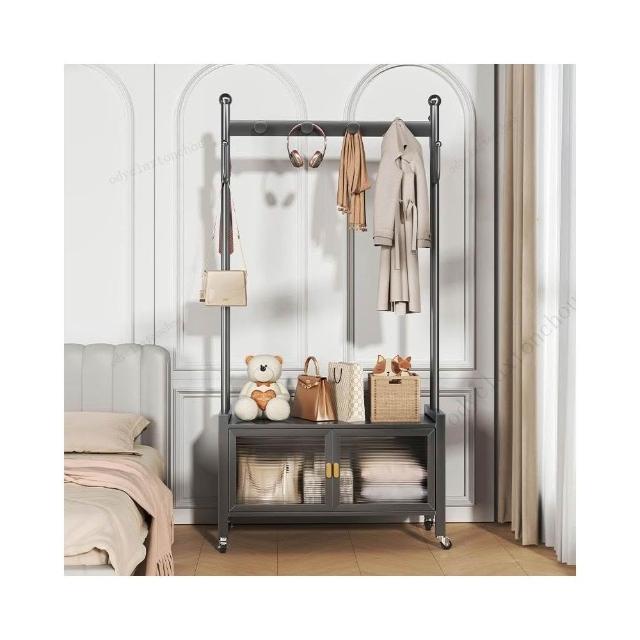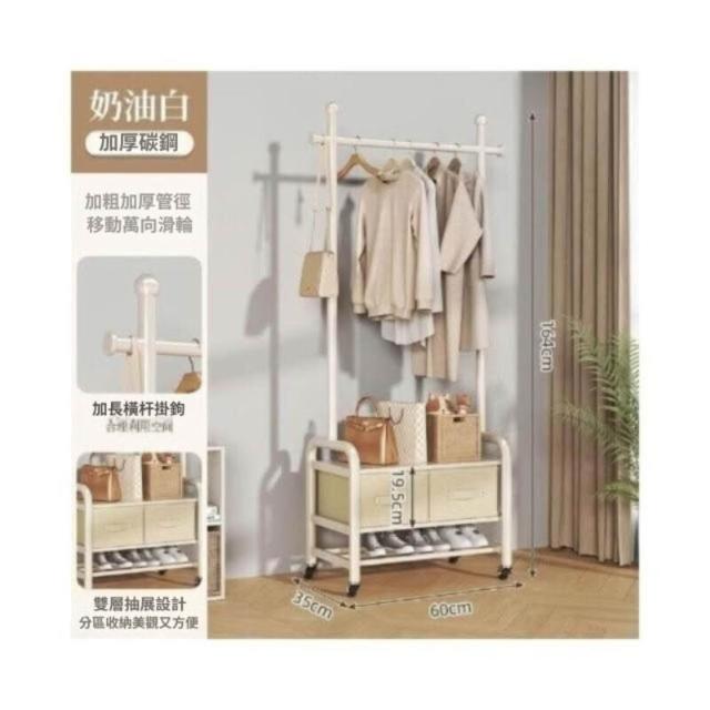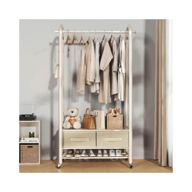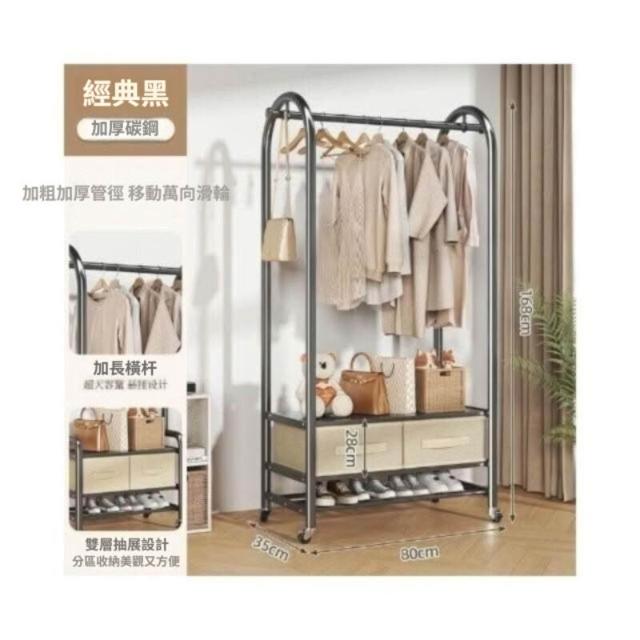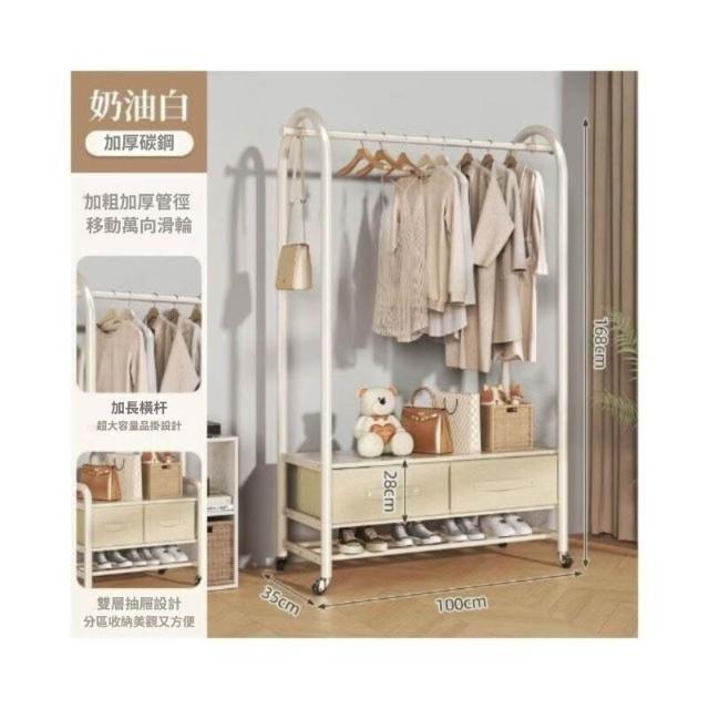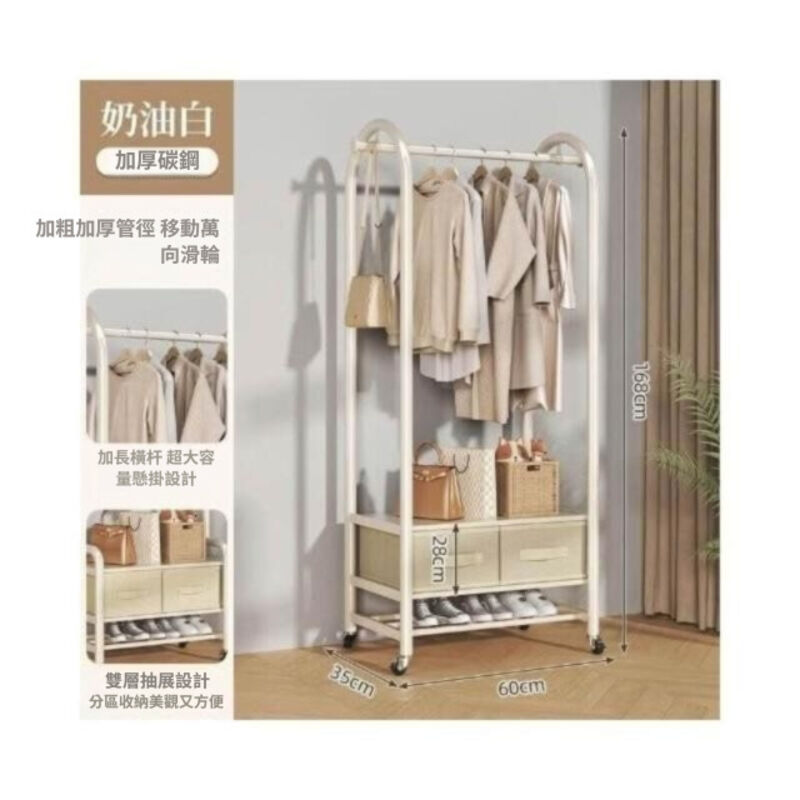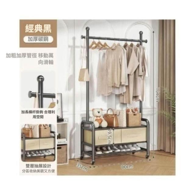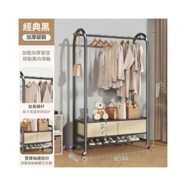 晾衣架落地家用衣帽架簡易掛衣架可移動小型帶抽屜收納床頭置物架