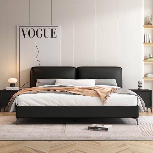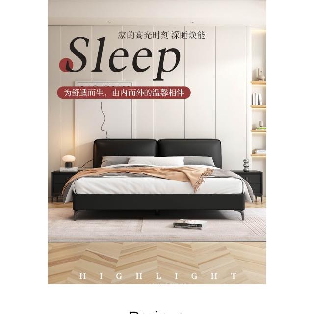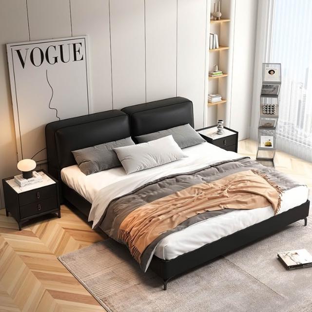 大黑牛意式極簡豆腐塊奶油風皮床現代簡約雙人床臥室主臥高端大氣