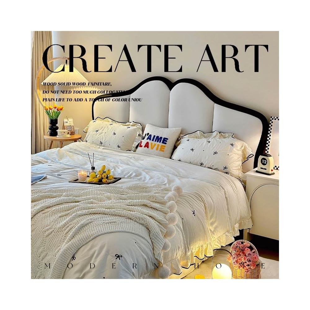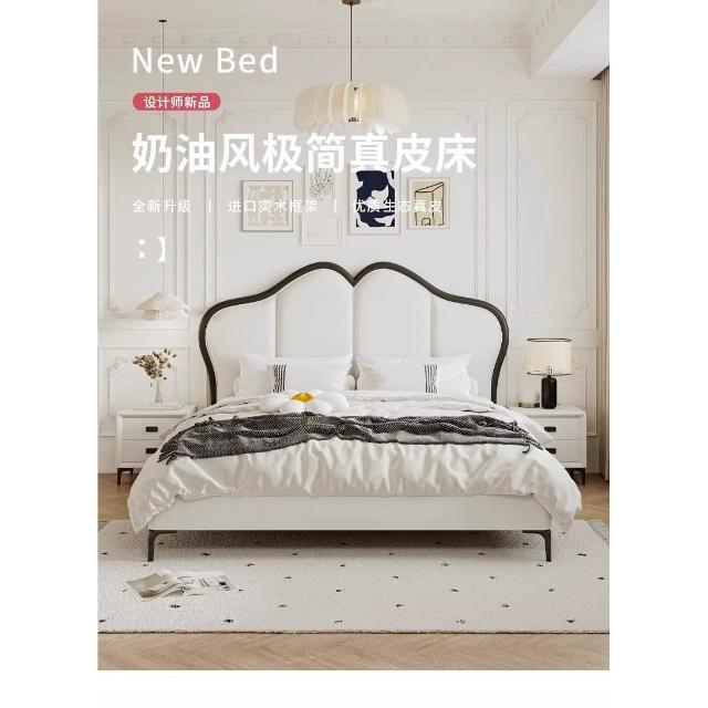 法式軟靠奶油風蝴蝶大床現代簡約1.8米真皮床主臥高級輕奢雙人床