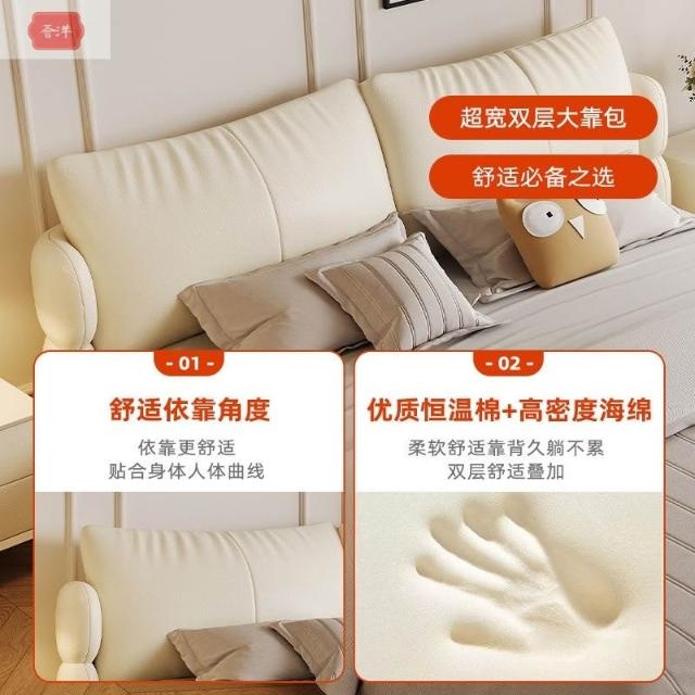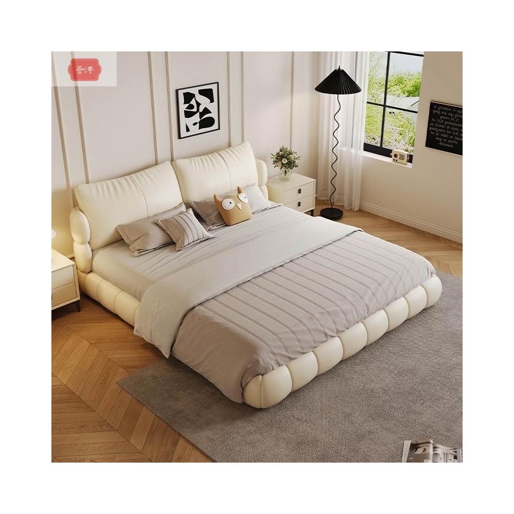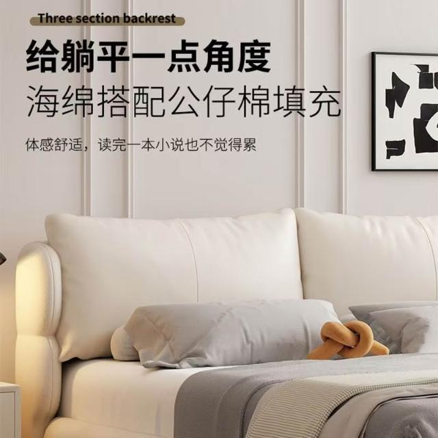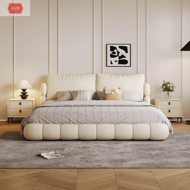 奶油風皮床全包裹飽滿蓬鬆真皮床簡約臥室雙人床主臥高端1.8現代
