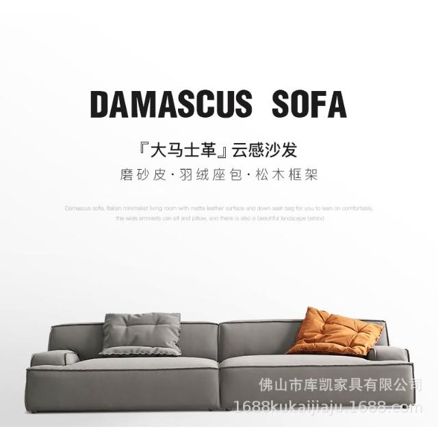 意式極簡磨砂皮沙發現代簡約大馬士革沙發客廳直排組合工廠直銷價