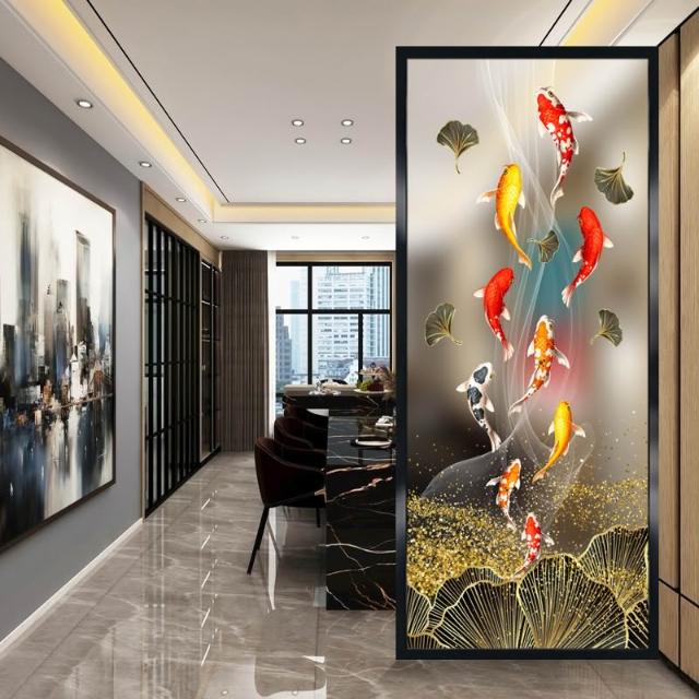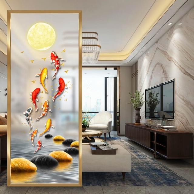 藝術玻璃屏風隔斷輕奢客廳入戶玄關洗漱臺鐵藝現代雕花裝飾不銹鋼