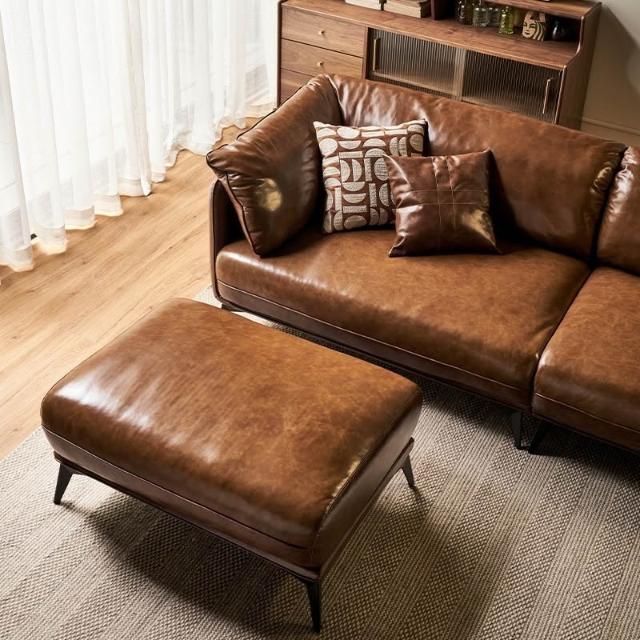 真皮沙發頭層牛皮小戶型客廳中古風美式復古油蠟淺咖啡色懷抱沙發