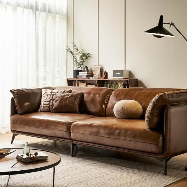 真皮沙發頭層牛皮小戶型客廳中古風美式復古油蠟淺咖啡色懷抱沙發