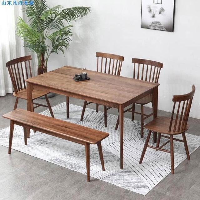 北歐簡約實木黑胡桃木懸浮餐桌櫻桃木白橡木日式現代長方形飯桌