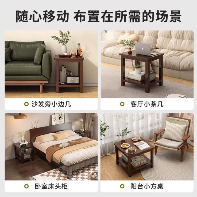 沙發邊幾客廳家用純實木小茶几小戶型臥室簡易雙層方形床頭小桌子