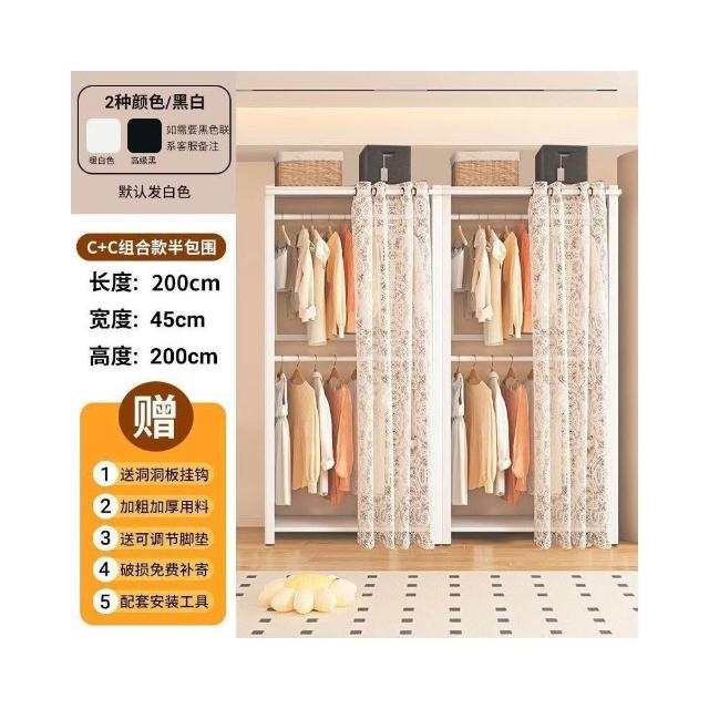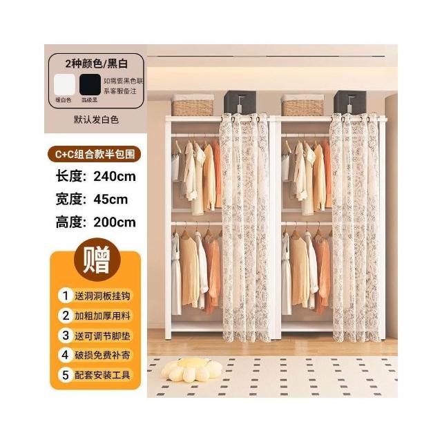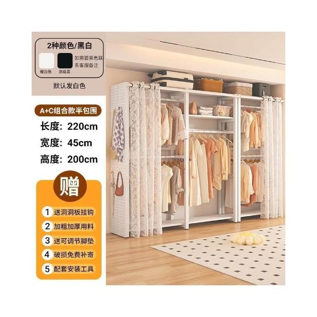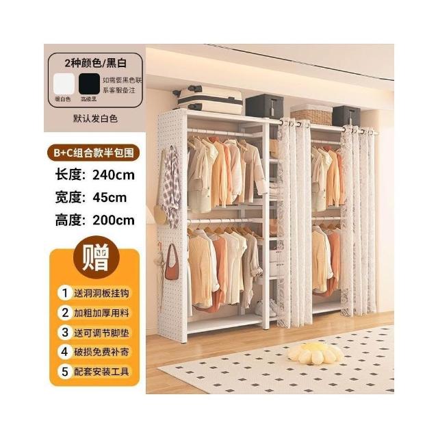 🔥 廠家直發🔥全臺免運 免稅 洞洞板遮擋簾簡易衣帽架臥室衣櫃出租屋衣帽間 衣櫃