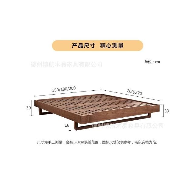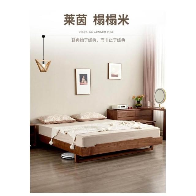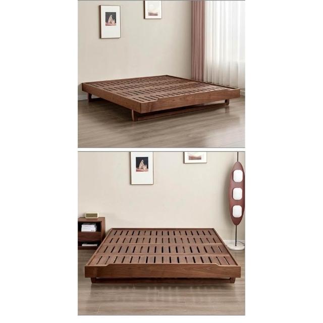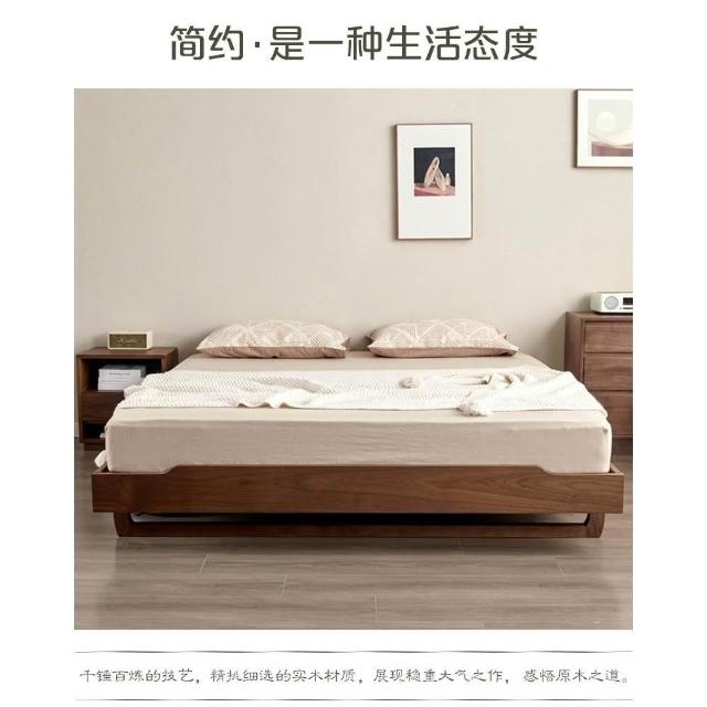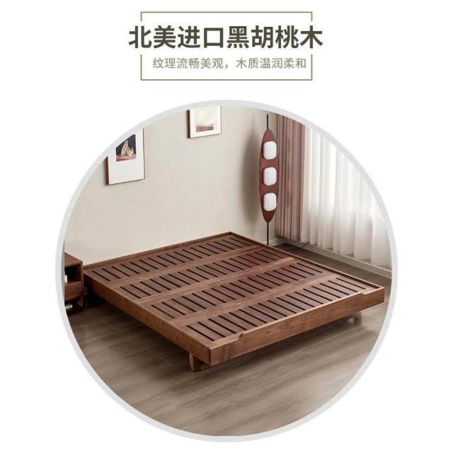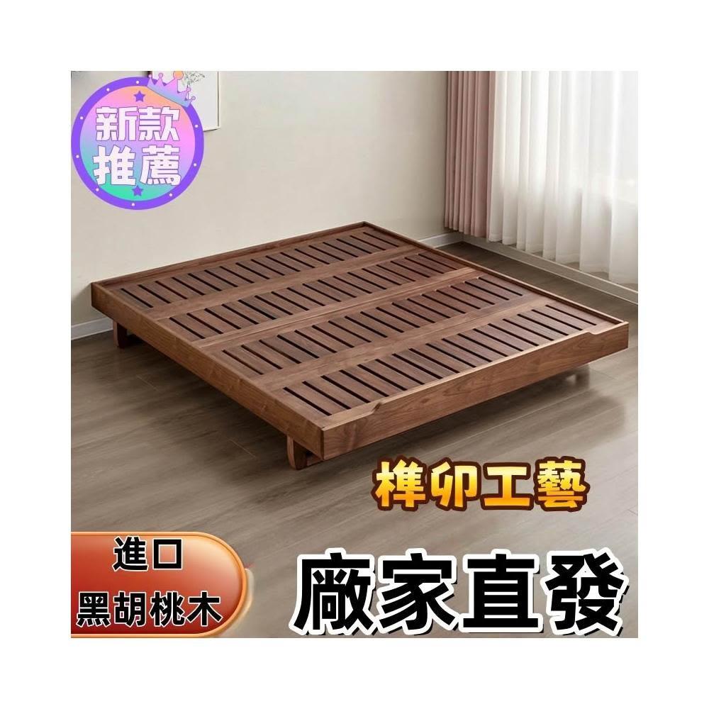 🔥 免運 免稅 1.8米2米北美黑胡桃木懸浮床 實木小戶型實木矮床 無床頭靠背雙人床