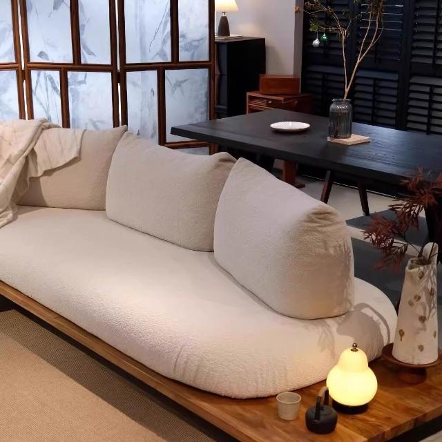 百信百貨 免運 小戶型民宿沙發中古風顆粒絨高回彈日式榻榻米侘寂原木風實木沙發