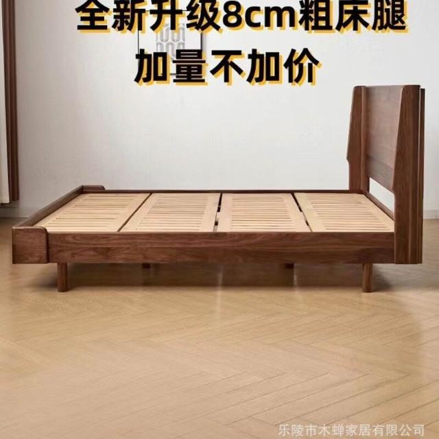 百信百貨 免運 黑胡桃木諾言床1.5米單人簡約實木床主臥1.8米雙人床北歐日式
