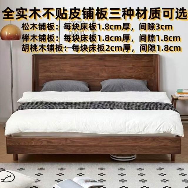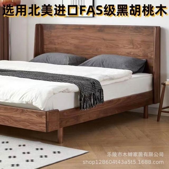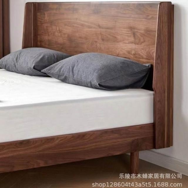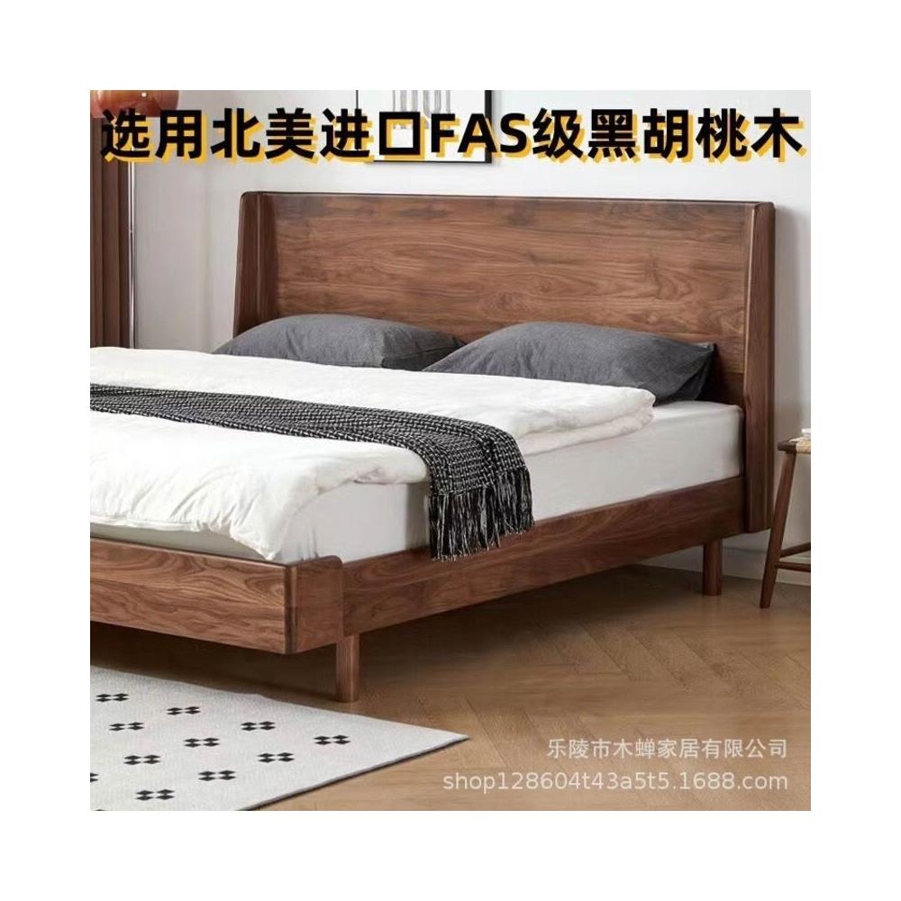 百信百貨 免運 黑胡桃木諾言床1.5米單人簡約實木床主臥1.8米雙人床北歐日式