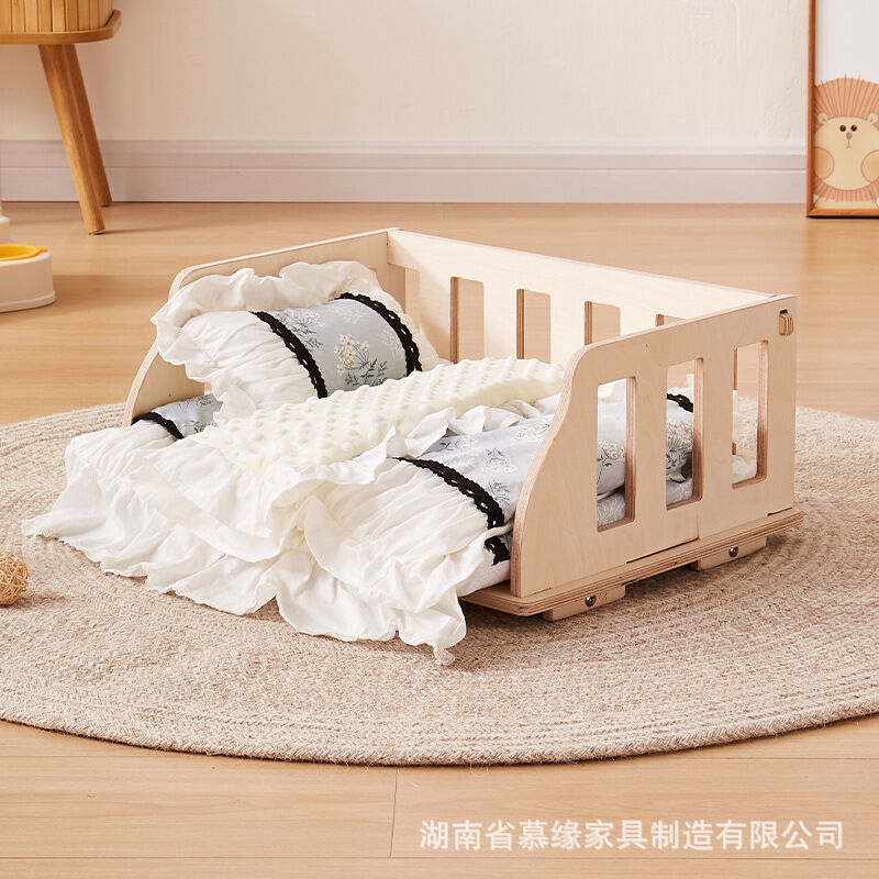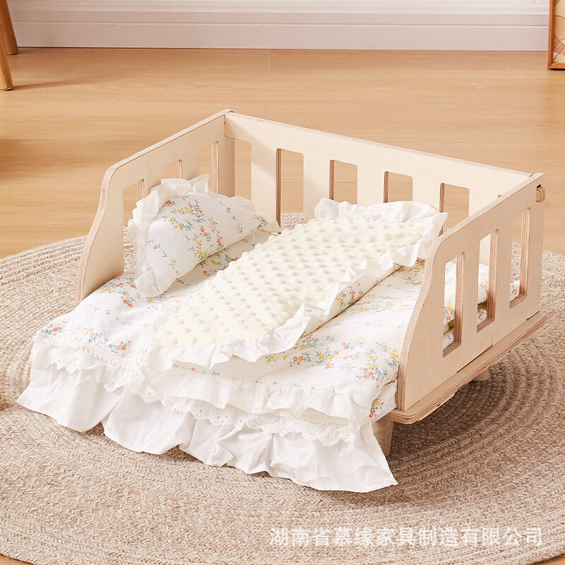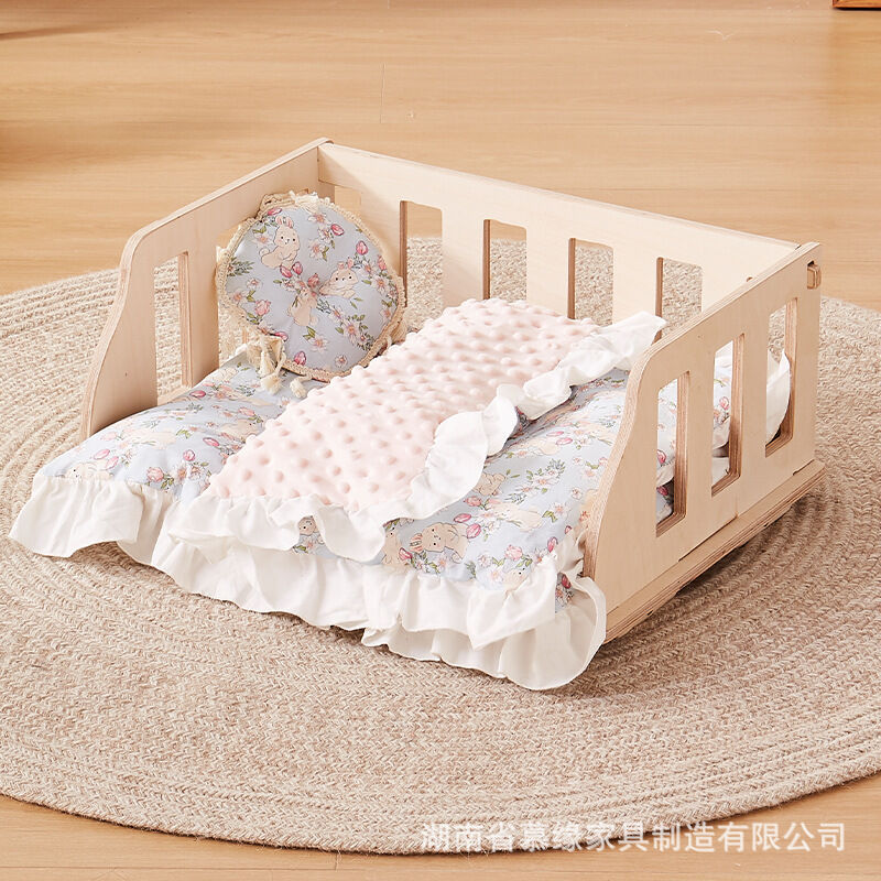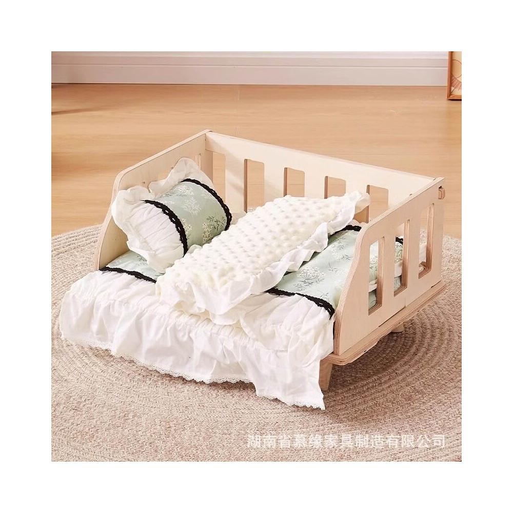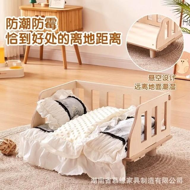 百信百貨 免運 狗窩中小型犬狗狗床四季通用木質圍欄床離地可拆洗寵物窩代發包郵