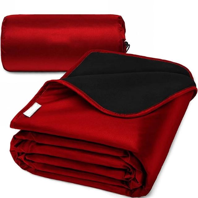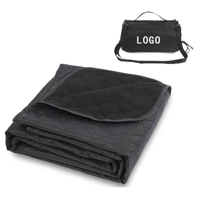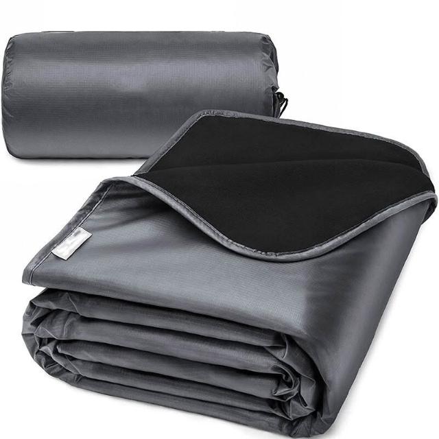 百信百貨 免運 戶外用品搖粒絨滌綸露營毯子防水加厚便攜式野餐墊防潮可機洗黑色