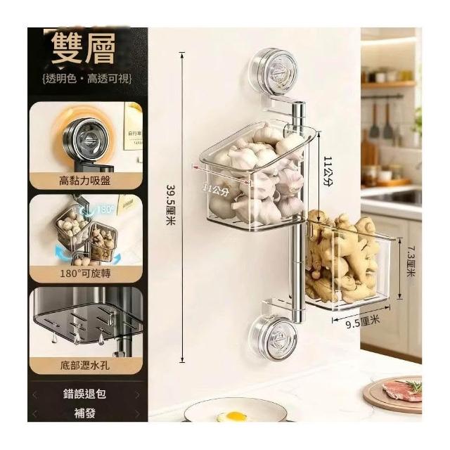 收納盒 置物架 壁掛架 旋轉收納盒 吸盤收納盒 蔥姜蒜收納 大蒜收納 生薑收納 小物收納 收納神器