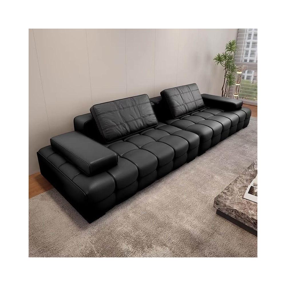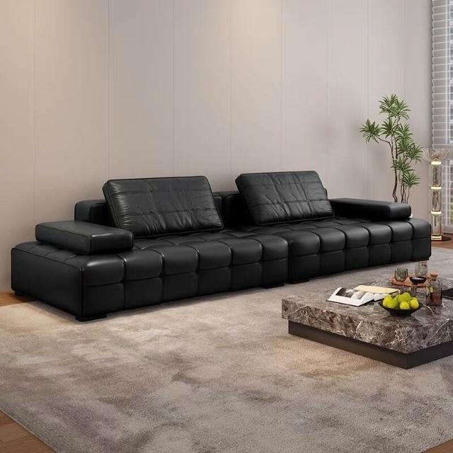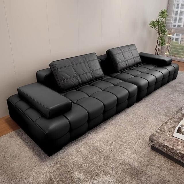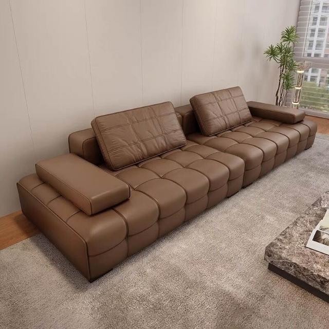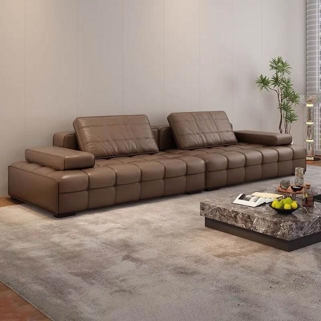 廠家直供 勞倫斯沙發簡約現代頭層牛皮意式別墅客廳小戶型直排皮藝沙發工廠