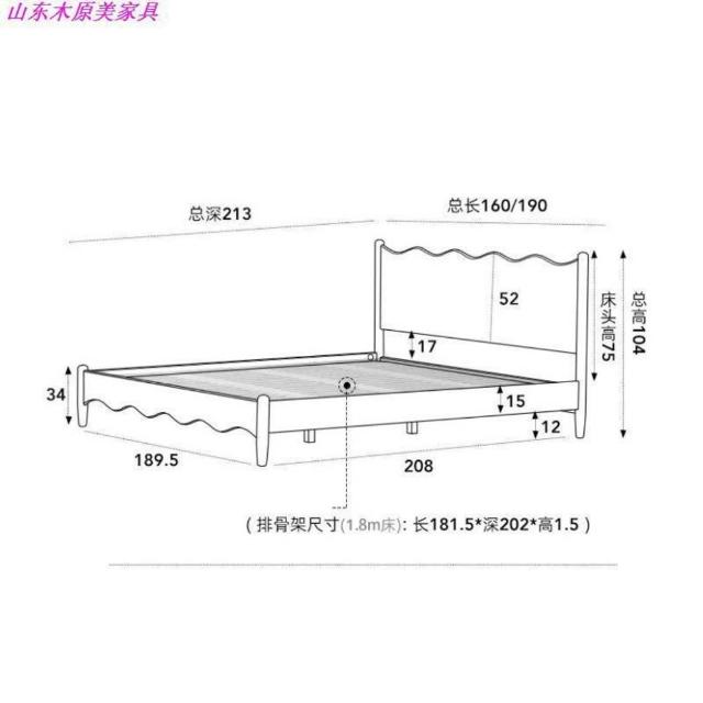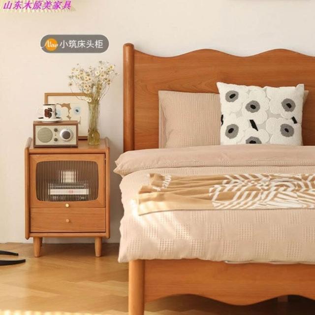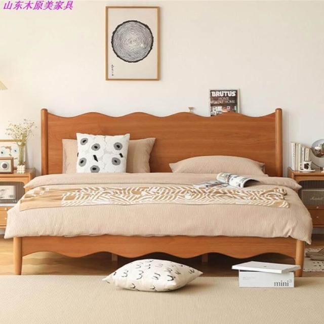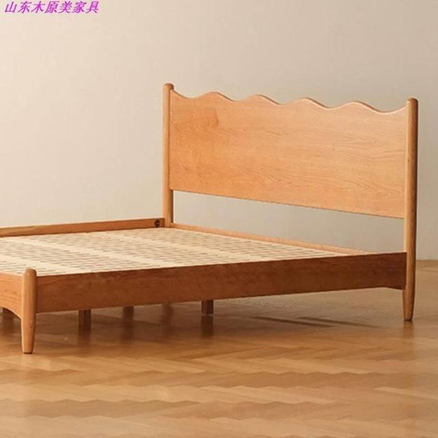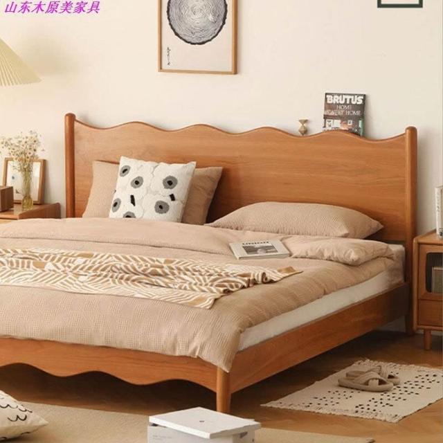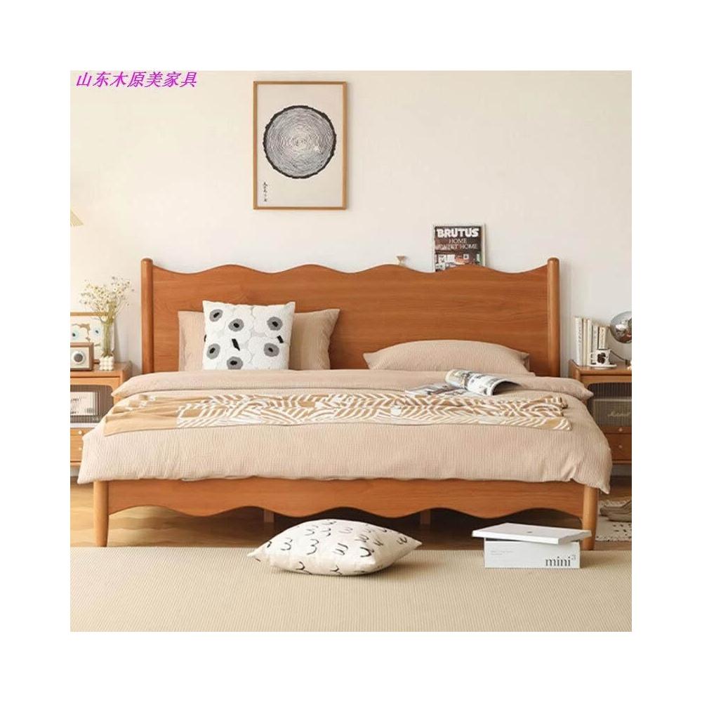 厂家直供 北美櫻桃木日式小戶型復古家具波浪簡約原木1.8米雙人床全實木床