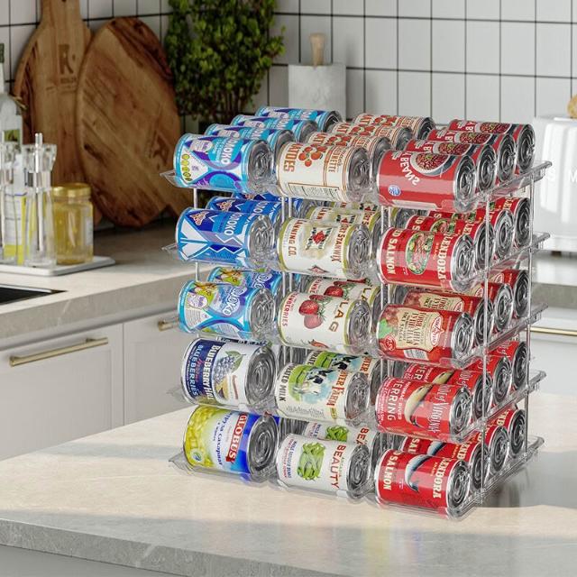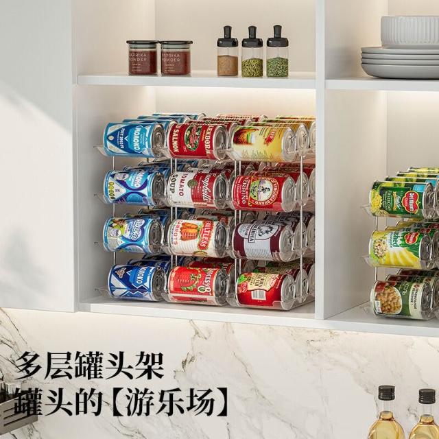 廠家直供 多層可堆疊罐頭收納架啤酒飲料透明置物架自由組合罐頭桌面收納架