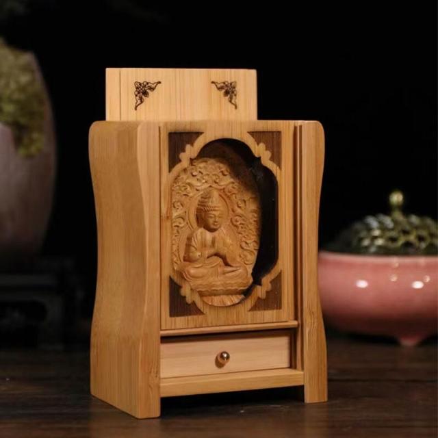 廠家直供 佛牌櫃微型神龛隨身小佛堂木雕菩薩佛像底座供奉竹製迷你佛龛