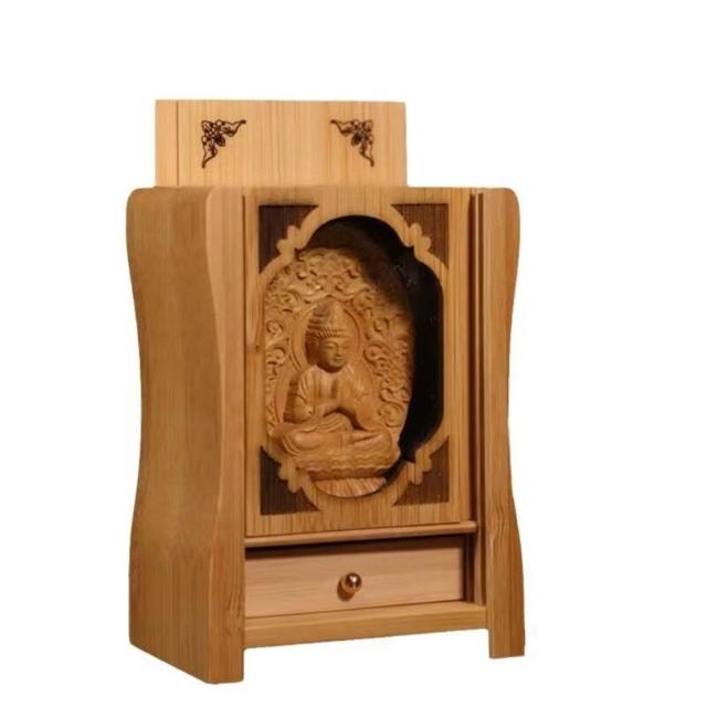 廠家直供 佛牌櫃微型神龛隨身小佛堂木雕菩薩佛像底座供奉竹製迷你佛龛