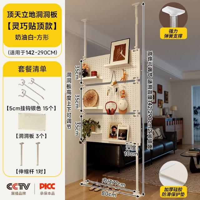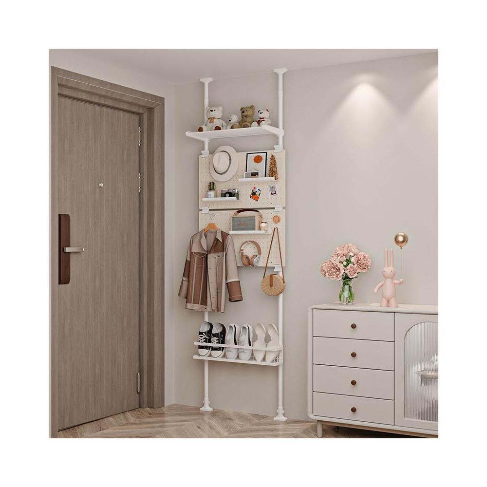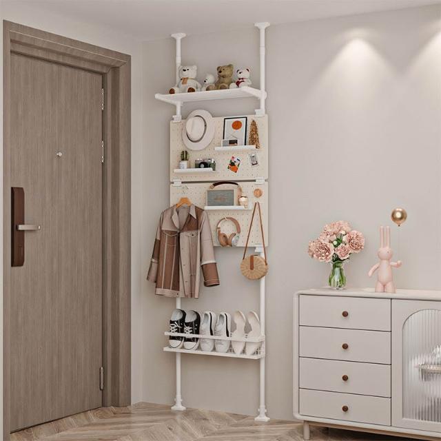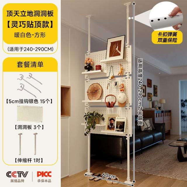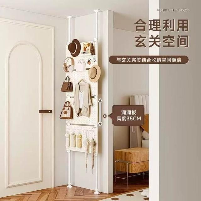 廠家直發 頂天立地洞洞板門後置物架家用免打孔入戶玄關隔斷收納架子