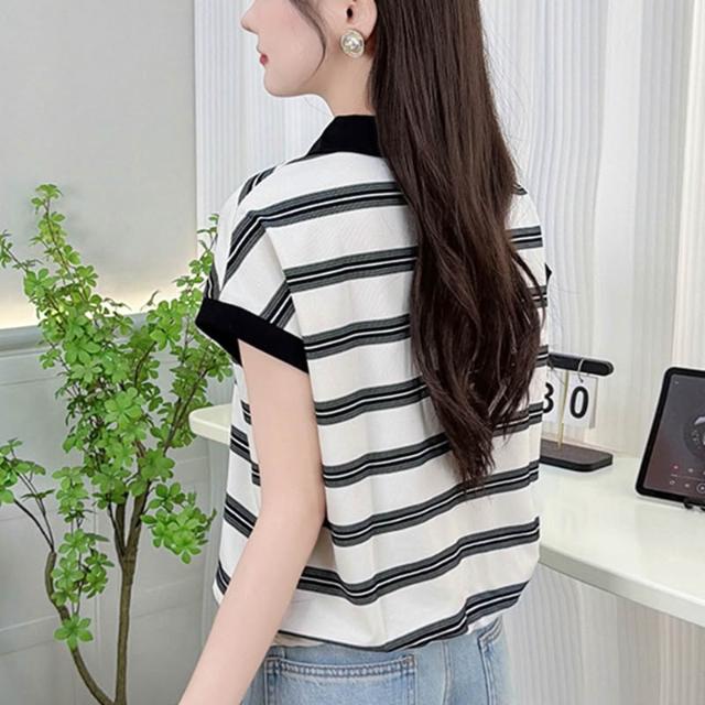 春夏短袖 T恤 上衣 有貨2026年夏裝新款短袖t恤寬松休閑上衣時尚減齡條紋小衫百搭女 百信百貨