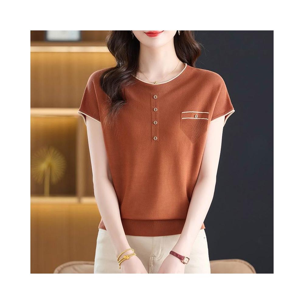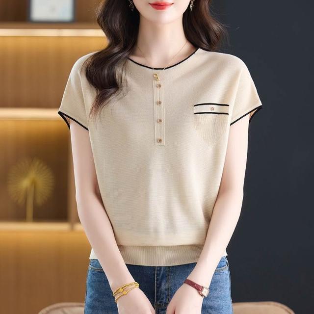 春夏短袖 T恤 上衣 2026百搭減齡天絲短袖夏季寬松減齡氣質中年新款通勤外穿針織衫女 百信百貨